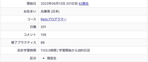 2023年のプログラミング学習をふりかえる記事です。 学習状況 6月にフィヨルドブートキャンプ(以下FBC)に入会し、約200日が経ちました。 2023/12/31時点での学習状況 FBCに記録した学習時間を表す草の記録 学習時間は1100時間くらいで、草の濃淡こそありま…